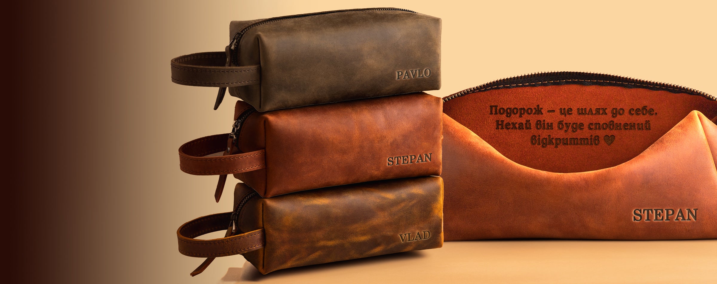 Твій щоденний must-have із натуральної шкіри та стильне місце для улюблених дрібниць.Перетвори косметичку на особливий аксесуар, додавши ім’я, ініціали, прізвище або будь-яке креативне гравіювання.
